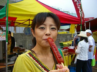 巡視船を降りたあとエミ氏は大好きなビックフランクフルトをゲット!