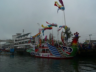 500円玉握りしめて、中継会場のマリンゲートしおがまの神輿海上渡御の様子を見に行きました。